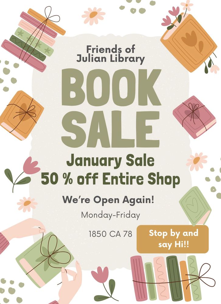 At the Friends of the Julian Library Bookstore, we're dedicated to raising funds for our beloved community library. Browse our selection of gently used books and enjoy events featuring live music and visiting authors.